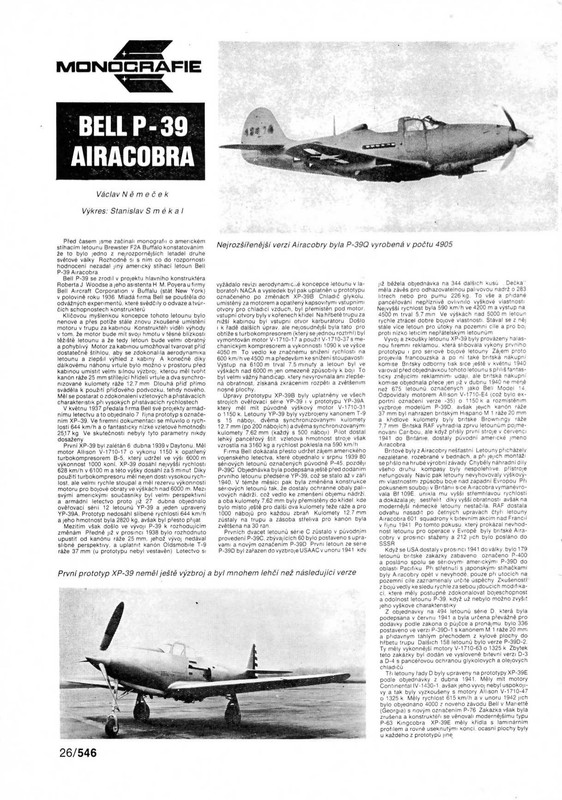 A copy of the Bell P-39 Airacobra Article from the Czech magazine Aviation + Cosmonautics1974 No. 14. (I have translated it into English using A.I.)