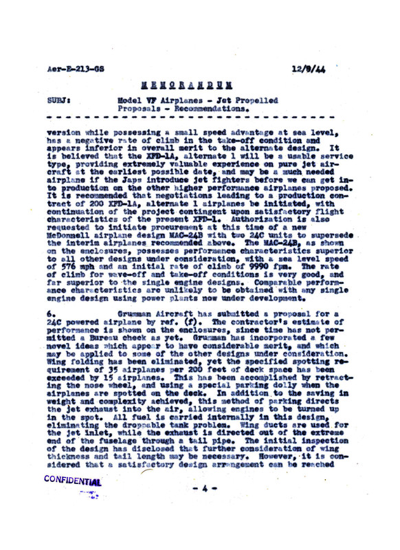 In response to a U.S. Navy request, McDonnell Aircraft proposed several jet-propelled "VF" (fighter) designs in the mid-1950s that ultimately led to the development of the F-4 Phantom II. The recommendations evolved from the F3H Demon and were initially rejected, but McDonnell's persistence and design modifications resulted in one of the most successful combat aircraft in history. Dated 9 December 1944.