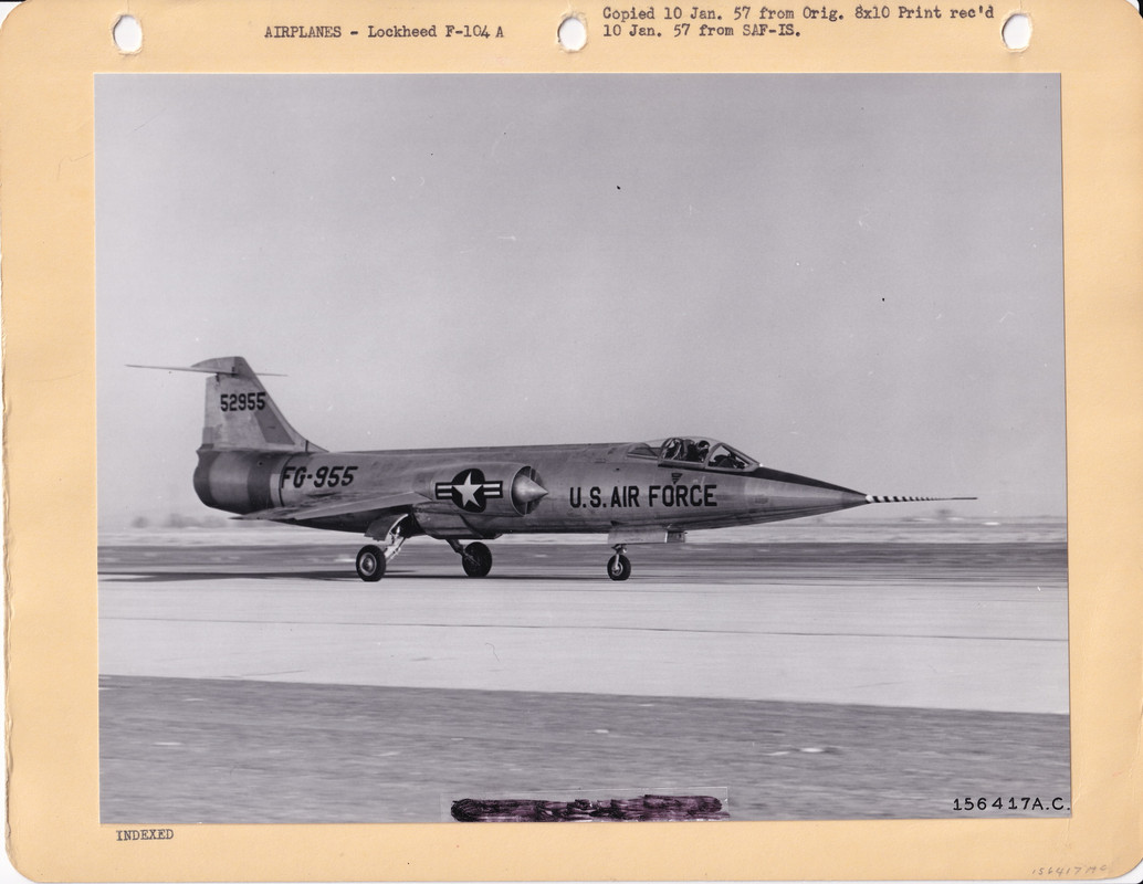 Copies of official Edwards Air Force Base photos of the Lockheed F-104A and F-104B and F-104C aircraft. Credit: Bill Spidle