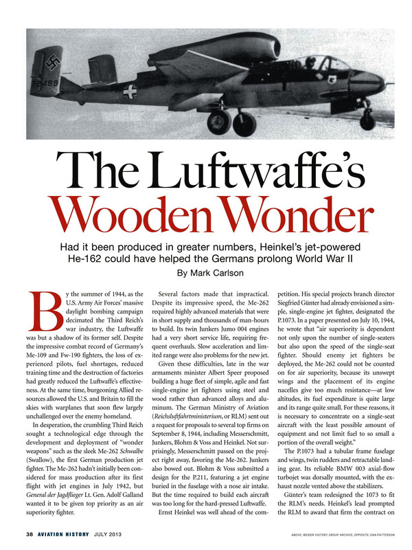 A copy of the Heinkel He-162 Article from the Aviation History magazine July 2013. Nicely done article.
