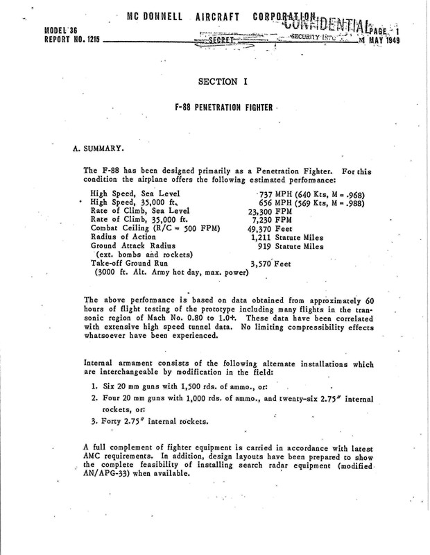 McDonnell F-88 Penetration Fighter Report